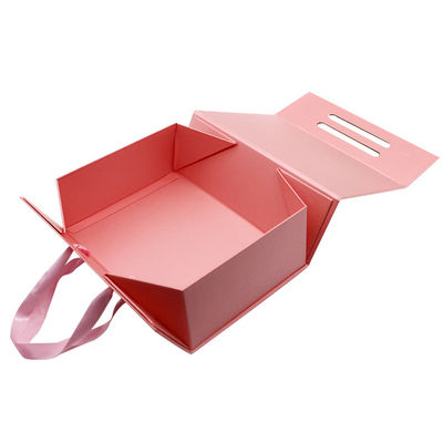 Luxury Customized Gift Foldable box Ribbon paper hard cardboard gift boxes Flip Top String Ribbon Handle Flat Paper Box
