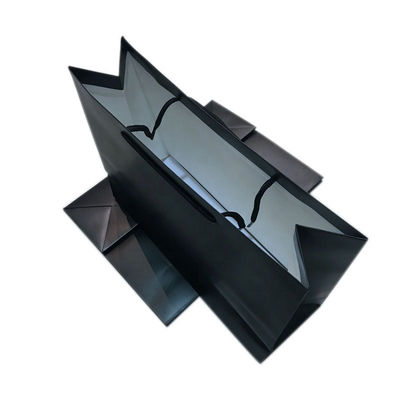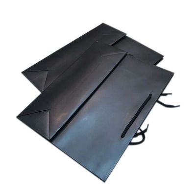 Custom Private Label Large Size Flat Black Gift Paper Hand Bags With Nylon Handles Bulk Sale For Retail Online Sale