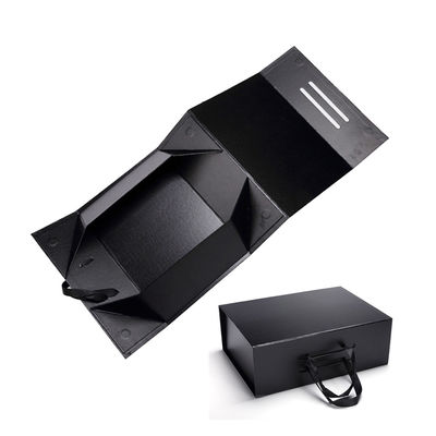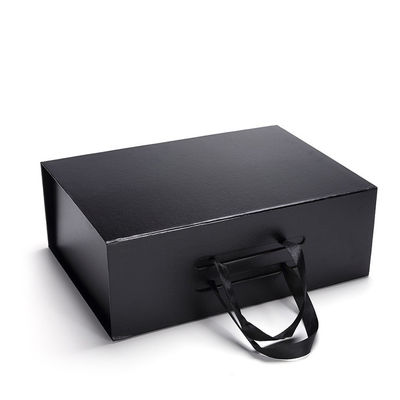 Custom Branding Matte Black Magnetic Closure Paper Gift Box For Garments Ribbon Handle Rectangular Folding Clothing