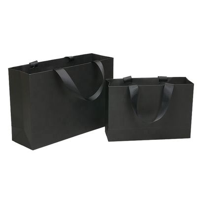 Luxury Black Gift Paper Bag Custom Made Printed Logo Jewelry Packaging Kraft Shopping Paper Bag With Ribbon Handles