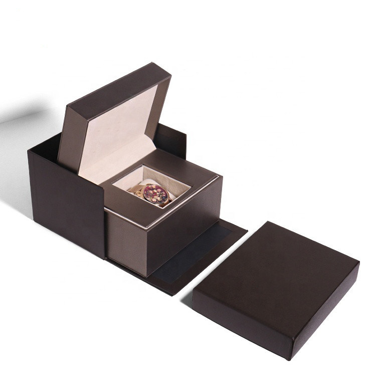 Luxury High Quality Custom Hot Stamping Logo Black Cardboard Paper Gift Packaging Single Watch Box With Foam Insert